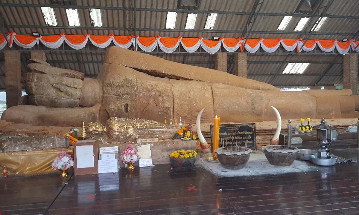 พาไปชมพระนอนสมัยทราวดี อายุกว่า 1,300 ปี รูปทรงแปลกตาแบบที่ไม่เคยมีที่ไหนมาก่อน สวยงามน่าไปเยือน