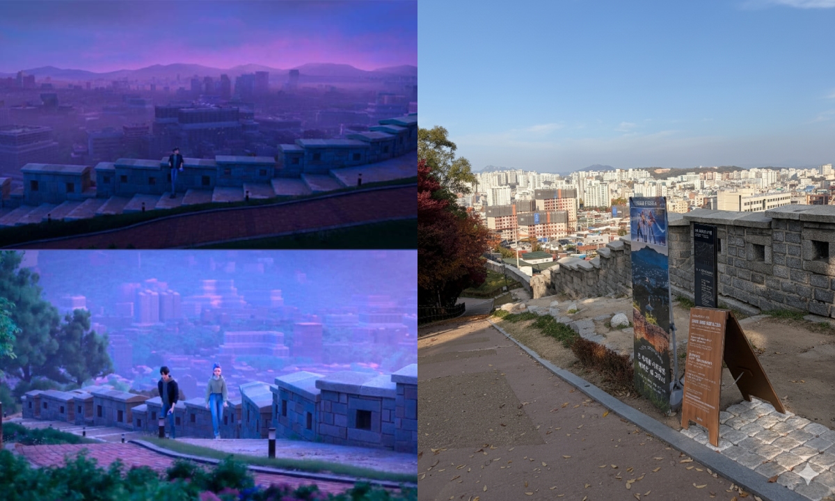 หากคุณเป็นแฟนตัวยงของเรื่องราวนี้ ย่อมจำฉากสำคัญที่ตัวละครหลักอย่าง รูมิ (Rumi) หัวหน้าวงผู้แบกรับความลับ และเพื่อนร่วมทีมใช้เป็นสถานที่ในการพบปะ, ปรึกษาแผนการ, หรือฝึกฝนพลังในยามที่ต้องซ่อนตัวจากสายตาผู้คน สถานที่แห่งนี้คือส่วนหนึ่งของกำแพงเมืองฮันยาง (Hanyangdoseong) ที่ทอดยาวไปตามแนวเนินเขาของสวนสาธารณะนัคซาน
