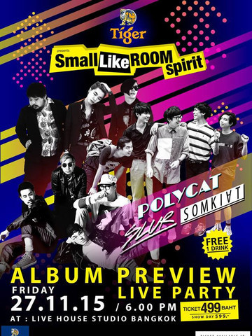 และในที่สุดทั้ง SLUR, POLYCAT และ SOMKIAT ก็ได้ฤกษ์งามยามดี พรีวิวอัลบั้มใหม่ล่าสุดให้แฟนๆ ได้ฟังเพลงก่อนใคร และยังได้ดูการทำงานเบื้องหลังของเพลงแต่ละเพลง และดูไลฟ์โชว์เพลงใหม่อย่าง exclusive สุดๆ ในงานปาร์ตี้สุดอบอุ่น “SMALL LIKE ROOM SPIRIT” (ชื่องานมาจากเพลงดังของวงร็อคเนเวอร์ดาย Nirvana กับเพลง ‘Smell Like Teen Spirit’ นั่นเอง) รายละเอียด คลิก!