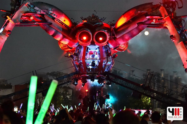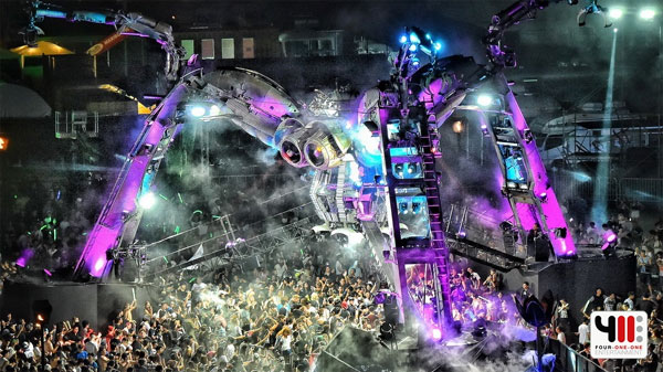 บรรยากาศคึกคักตั้งแต่ช่วงเย็นที่ประตูทางเข้ายังไม่เปิด ผู้คนยืนรอเพื่อที่จะได้เข้าไปสัมผัสกับความอลังการของ “เวทีหุ่นยนต์แมงมุมยักษ์พ่นไฟ” (Arcadia Spider Stage) ซึ่งเป็นปรากฏการณ์ของเทศกาลดนตรีทั่วโลก และเมื่อได้ฤกษ์เปิดประตู คอปาร์ตี้ก็มุ่งหน้าไปตามเสียงกระหึ่มจากเจ้าแมงมุมยักษ์ที่มี ดีเจ อรวรรณ (DJ ORAWAN)