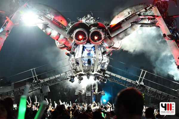 และ ดีเจ มังกร (DJ DRAGON) สองตัวแทนจากประเทศไทยขึ้นอุ่นเครื่องความร้อนแรงของซาวนด์ EDM ให้ค่อยๆ ปะทุขึ้นเรื่อยๆ จากนั้น 18.00 น. ความระห่ำระลอกแรกอย่างเป็นทางการก็บังเกิดขึ้น ‘มัสท์ ดาย’ (MUST DIE!) อยู่บนเวทีเป็นที่เรียบร้อย โลกแห่งดนตรี Dubstep ของหนุ่มคนนี้ทำเอาสาวกบริเวณด้านล่างโยกกันแบบไม่สนใจอะไรทั้งสิ้น บีตเน้นๆ หนักๆ เร่งเร้าอะดรีนาลีนให้พลุ่งพล่านตั้งแต่แสงอาทิตย์ยังไม่หมดลง จนท้ายที่สุดแฟนๆ ทนไม่ไหว วิ่งเข้าไปโยกกันอย่างเมามันส์อยู่ใต้เวทีแมงมุมยักษ์กันอย่างแน่นขนัด