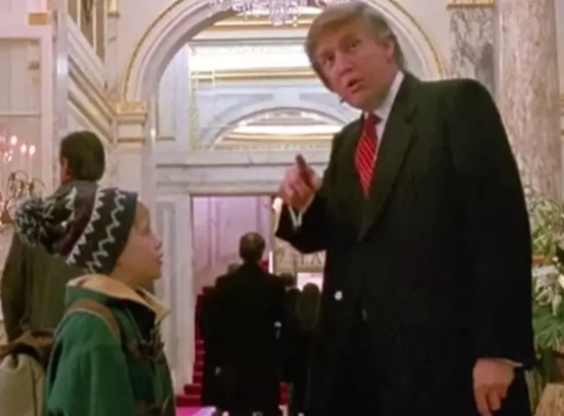 ทรัมป์ปรากฏในภาพยนตร์เพียง 7 วินาที เมื่อนักแสดงเด็ก แมคคอลลีย์ คัลคิน ขอเส้นทางจากเขาที่ Plaza Hotel ในนิวยอร์ก แม้ว่าจะเป็นช่วงเวลาสั้น ๆ แต่โคลัมบัสก็อดไม่ได้ที่จะ “อยากให้มันหายไป”