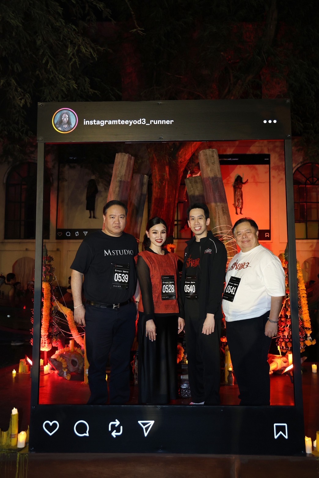 นอกจากนี้ยังมี ต้อม–ธนเดช ประดิษฐ์ ผู้กำกับ พร้อมทีมนักแสดงจาก “ธี่หยด 3” ได้แก่ จูเนียร์ กาจบัณฑิต ใจดี, แฉะ องอาจ เจียมเจริญพรกุล และ แก๊ป จักริน ภูริพัฒน์ มาร่วมสร้างตำนานความหลอน ท่ามกลางแฟนหนังและนักวิ่งจำนวนมาก