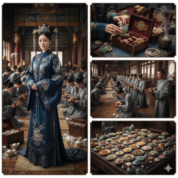 ชีวิตของเหล่าพระสนมและฮองเฮาแห่งราชวงศ์ชิงที่พำนักอยู่ในพระราชวังต้องห้ามนั้นเต็มไปด้วยความหรูหรา แม้จะอยู่ในวังที่ไม่มีตลาดให้จับจ่ายซื้อของ ไม่ต้องเสียค่าเช่าบ้านหรือซื้ออาหาร แต่พวกเธอกลับมีรายจ่ายจำนวนมหาศาล คำว่า "ฟุ่มเฟือยสุดขีด" ดูจะไม่เกินจริงเลย เมื่อพบว่าพระสนมระดับสูงบางองค์ใช้เงินไปกับการปรนเปรอตัวเองนับเป็นเงินไทยอาจสูงถึงหลักร้อยล้านบาทต่อเดือน ทำให้เกิดคำถามว่า เงินจำนวนมหาศาลนั้นถูกใช้ไปกับสิ่งใดกันแน่