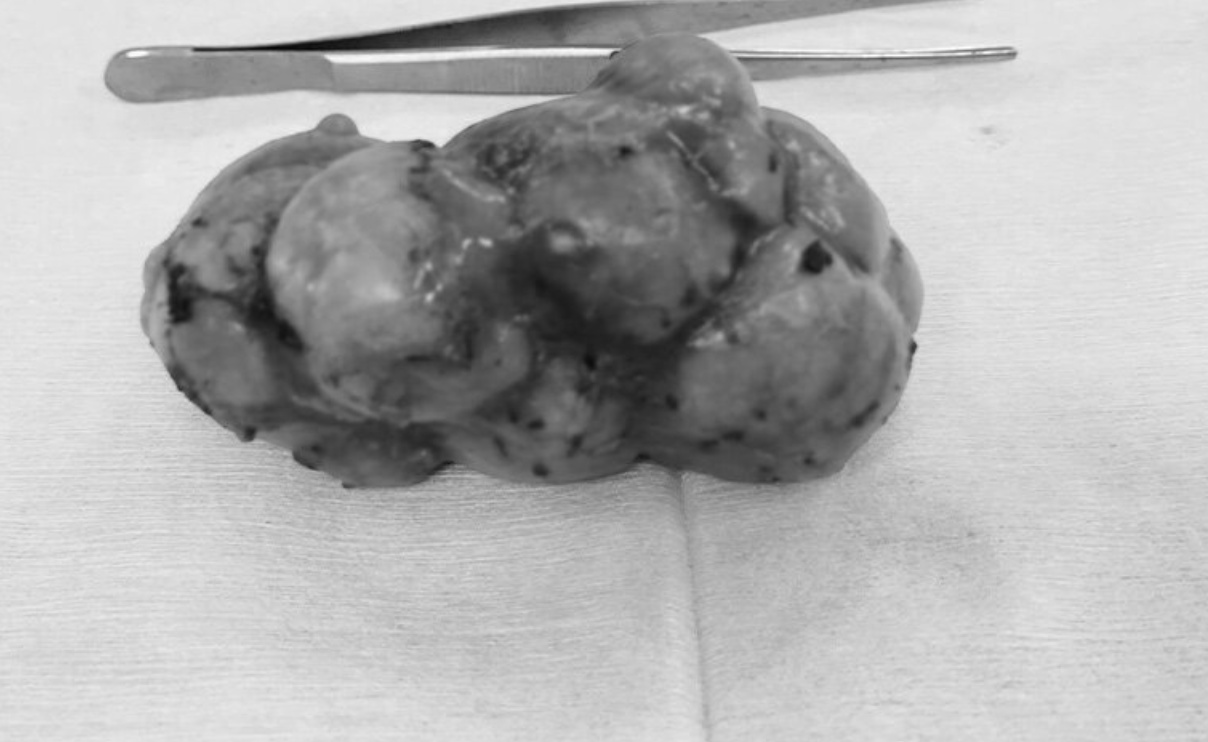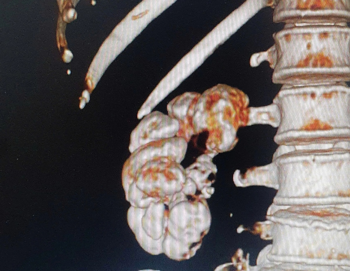 ผู้ป่วยจึงได้รับการผ่าตัดส่องกล้องเอาไตขวาที่ “กลายเป็นหิน” ออก ระหว่างการผ่าตัด ทีมแพทย์พบว่าไตมีลักษณะผิดปกติ ขรุขระ ภายในมีหนองสีเหลือง หลอดเลือดแดงของไตฝ่อลีบ ไม่สามารถส่งเลือดไปเลี้ยงได้อีกต่อไป