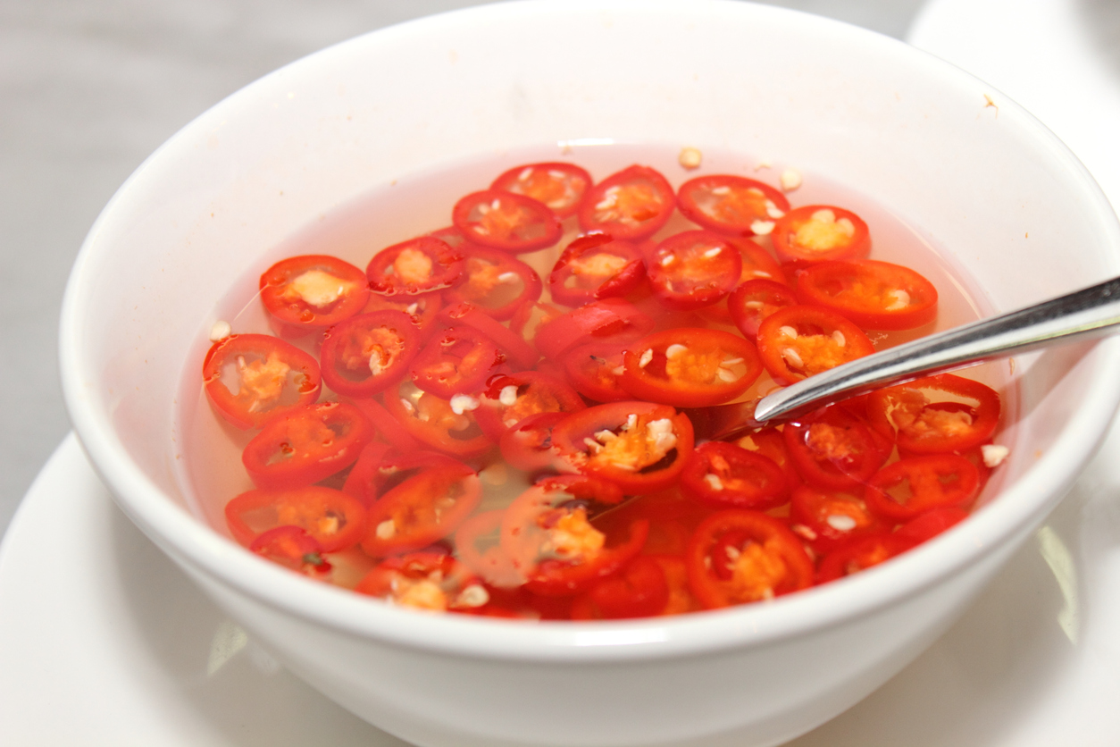 น้ำส้มพริกดอง (ไม่ใช่พริกบด) น้ำส้มจะค่อนข้างใส และหากพริกในน้ำส้มซีด ขาว หรือเปื่อยยุ่ย ไม่ควรกินเพราะอาจเป็นน้ำส้มสายชูปลอม หากใช้น้ำส้มสายชูแท้ พริกจะไม่เปลี่ยนสีมากนักแม้ทำไว้นาน