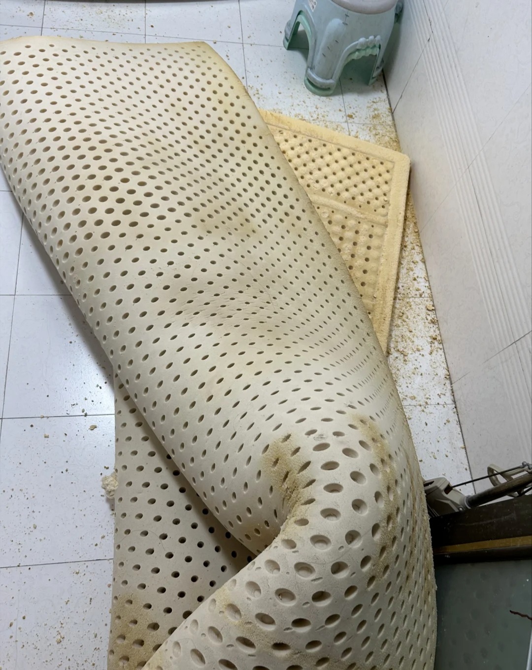 แรก ๆ นอนจะนุ่มสบาย แต่ไม่นานจะเหลือง แตกเป็นชิ้นเล็ก และมีกลิ่นฉุน อันตรายคือผู้ใช้สามารถสูดฝุ่นยางและสารเคมีเข้าสู่ระบบทางเดินหายใจ ส่งผลต่อปอดในระยะยาว