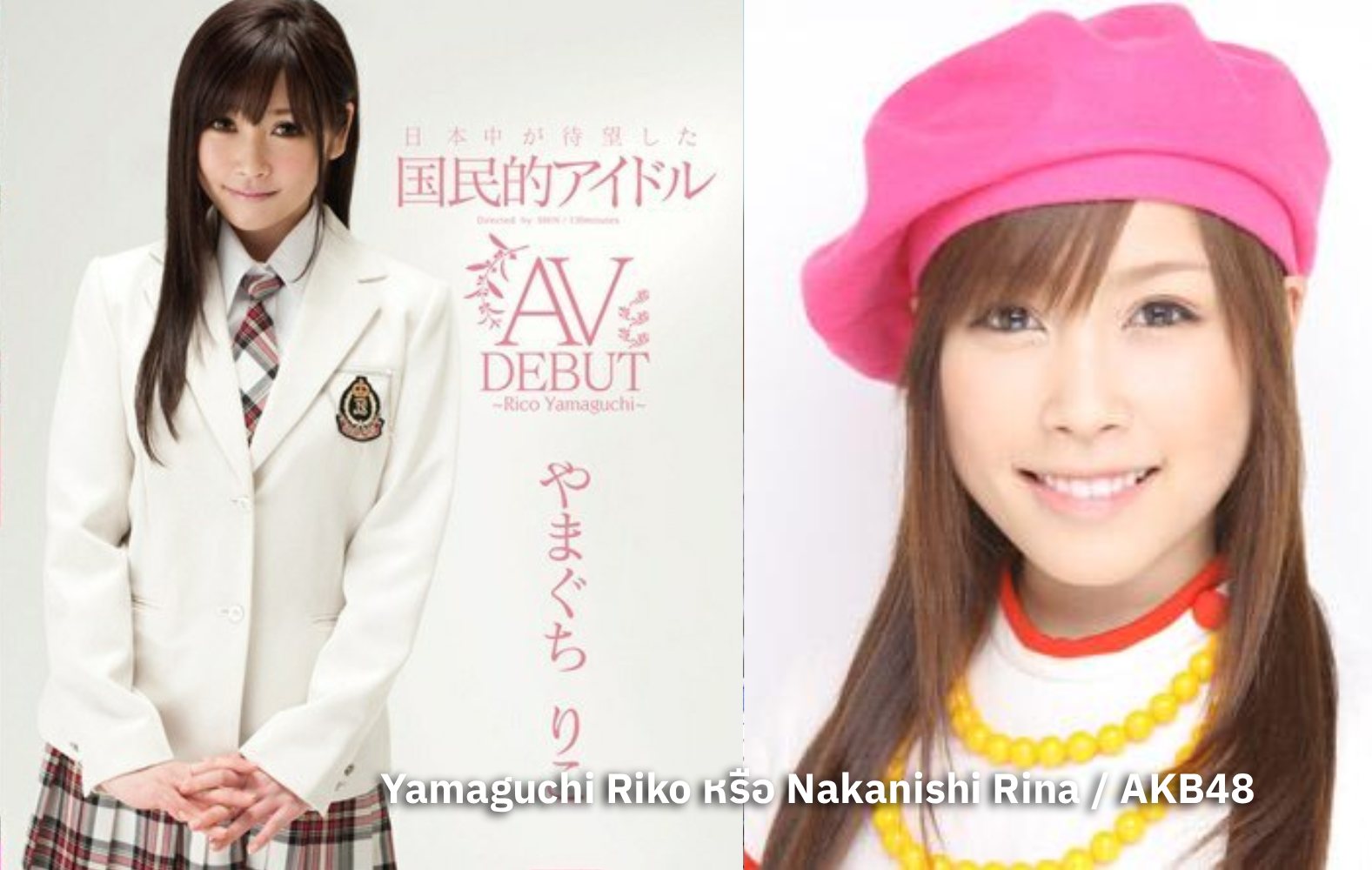 | Yamaguchi Riko | Nakanishi Rina / AKB48 | ทีม A (2005-2008) | 2010 | คนแรกจาก 48Group ที่เดบิวต์ AV |