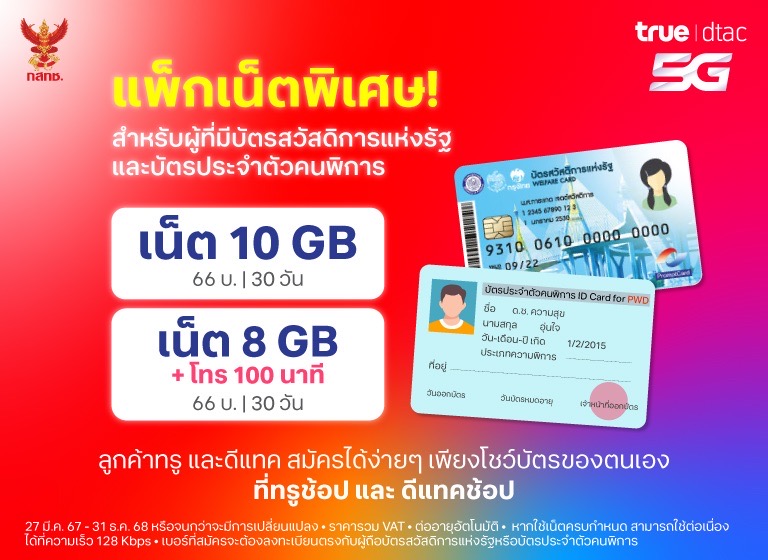 ทั้งนี้คนพิการทุกประเภทและผู้ถือบัตรสวัสดิการแห่งรัฐ สามารถแสดงบัตรประจำตัวคนพิการและบัตรสวัสดิการแห่งรัฐได้ที่ศูนย์บริการของผู้ให้บริการโทรศัพท์มือถือทั้งสองเครือข่ายทั่วประเทศ ส่วนผู้สูงอายุก็แสดงบัตรประจำตัวประชาชนเพื่อขอรับแพ็คเกจราคาพิเศษ หรือสอบถามเพิ่มเติมได้ตามศูนย์บริการทั่วประเทศตั้งแต่วันนี้เป็นต้นไป