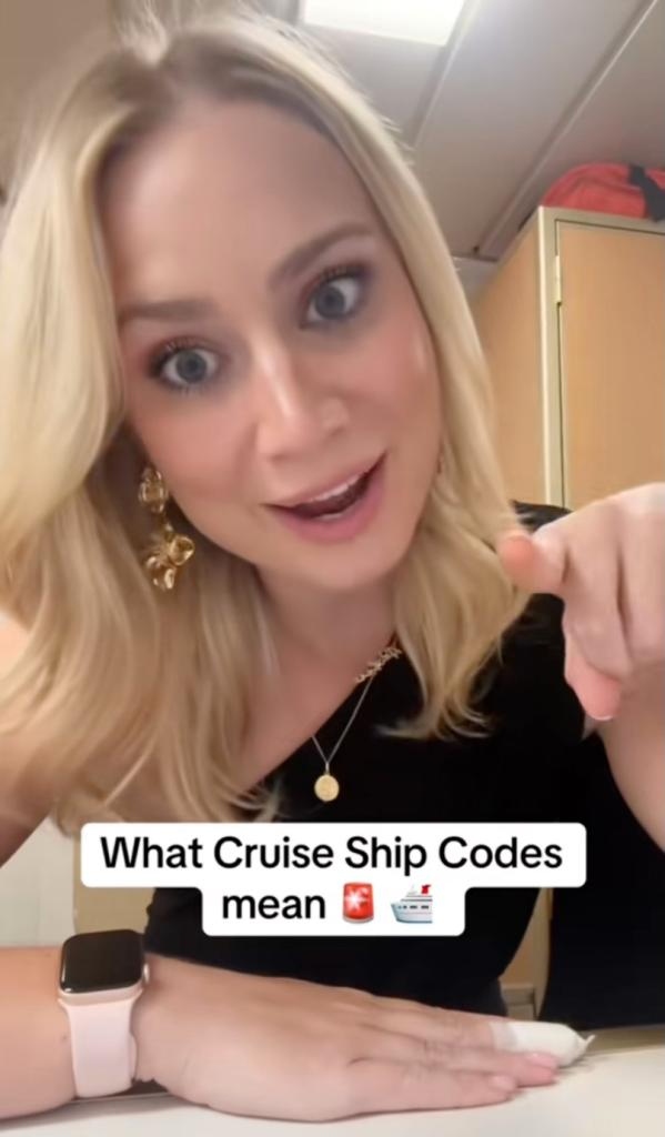“พวกเรามีรหัสลับหลากหลายแบบที่ถูกประกาศใช้” แอมเบอร์ โอลิเวีย เจ้าหน้าที่ฝ่ายบันเทิงบนเรือสำราญจากสหราชอาณาจักร เผยกับแฟน ๆ กว่า 100,000 คนบน TikTok ของเธอ