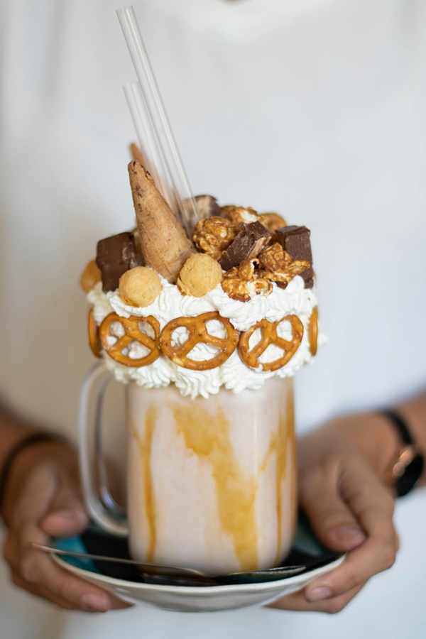 มิลค์เชกมีพลังงานถึง 1,362 แคลอรี และมีไขมัน 130 กรัม ส่วนผสมหลักคือครีมวิปหนัก