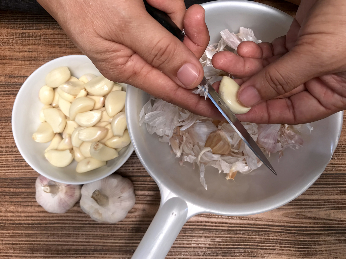 ควรเลือกกระเทียมสด สะอาด ไม่มีเชื้อรา และล้างเปลือกให้สะอาด ใช้เฉพาะเปลือกบางด้านใน ไม่ควรใช้เปลือกแข็งด้านนอกที่สกปรก สามารถตากแห้งหรือคั่วเล็กน้อยเพื่อความปลอดภัยและคงรสชาติ