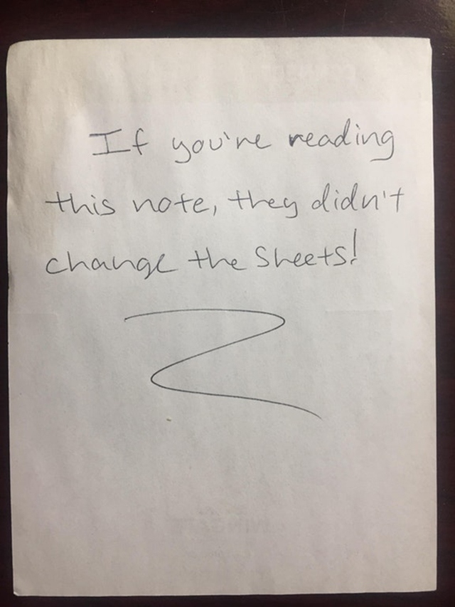 "ถ้าคุณกำลังอ่านสิ่งนี้อยู่ หมายความว่า ผ้าปูเตียงไม่ได้ถูกเปลี่ยน"