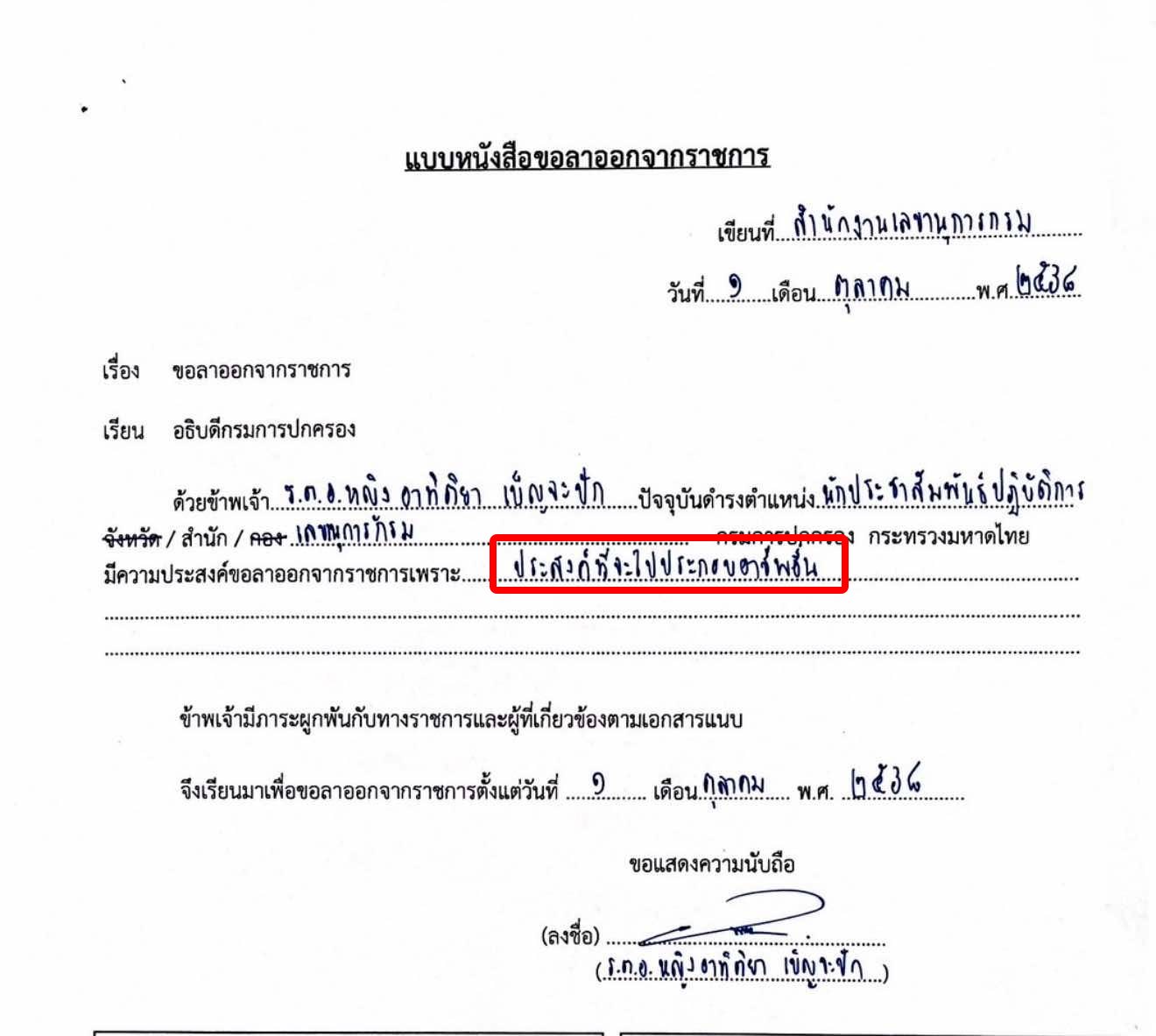 เมื่อวันที่ 1 ตุลาคม 2568 ผู้กองแคทซึ่งเพิ่งถูกเสนอชื่อให้ดำรงตำแหน่งปลัดอำเภอเมืองศรีสะเกษ มีการรายงานว่าถูกคำสั่งย้ายและมีการขอตัวไปช่วยราชการที่สำนักงานเลขาธิการสภาผู้แทนราษฎร แต่กรมการปกครองกลับไม่อนุมัติการขอไปช่วยงานดังกล่าว ต่อมาเจ้าตัวได้ยื่นหนังสือลาออกจากราชการ ส่งถึงอธิบดีกรมการปกครองเพื่อพิจารณา