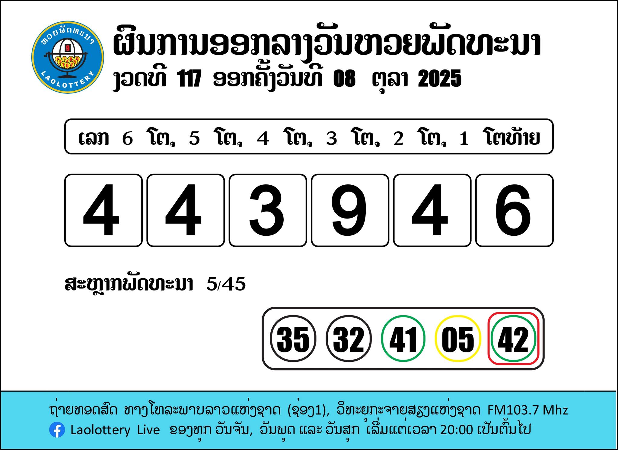 รายงานผลหวยลาว 8 ตุลาคม 2568 (8/10/68) ผลหวยลาว 6 ตัวออกรางวัลดังนี้