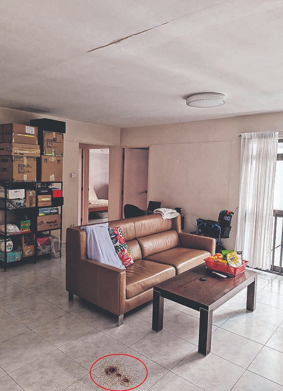 "นายเจิ้ง" (นามสมมุติ) บุตรชายของผู้ที่ค้นพบเหตุการณ์ เล่าว่า เขาได้รับโทรศัพท์จากแม่วัย 70 ปี เมื่อเวลาประมาณ 6.00 น. โดยแจ้งว่ามีของเหลวผิดปกติและมีกลิ่นเหม็น เมื่อเขาไปถึงอพาร์ตเมนต์ของแม่ประมาณ 9.00 น. ของเช้าวันนั้น เขาใช้กระดาษทิชชู่ช่วยแม่เช็ด “ของเหลวสีแดงเหนียวมากและมีกลิ่นเหม็นมาก” ออกด้วยมือเปล่า หลังจากนั้นเขาก็ไปทำงาน