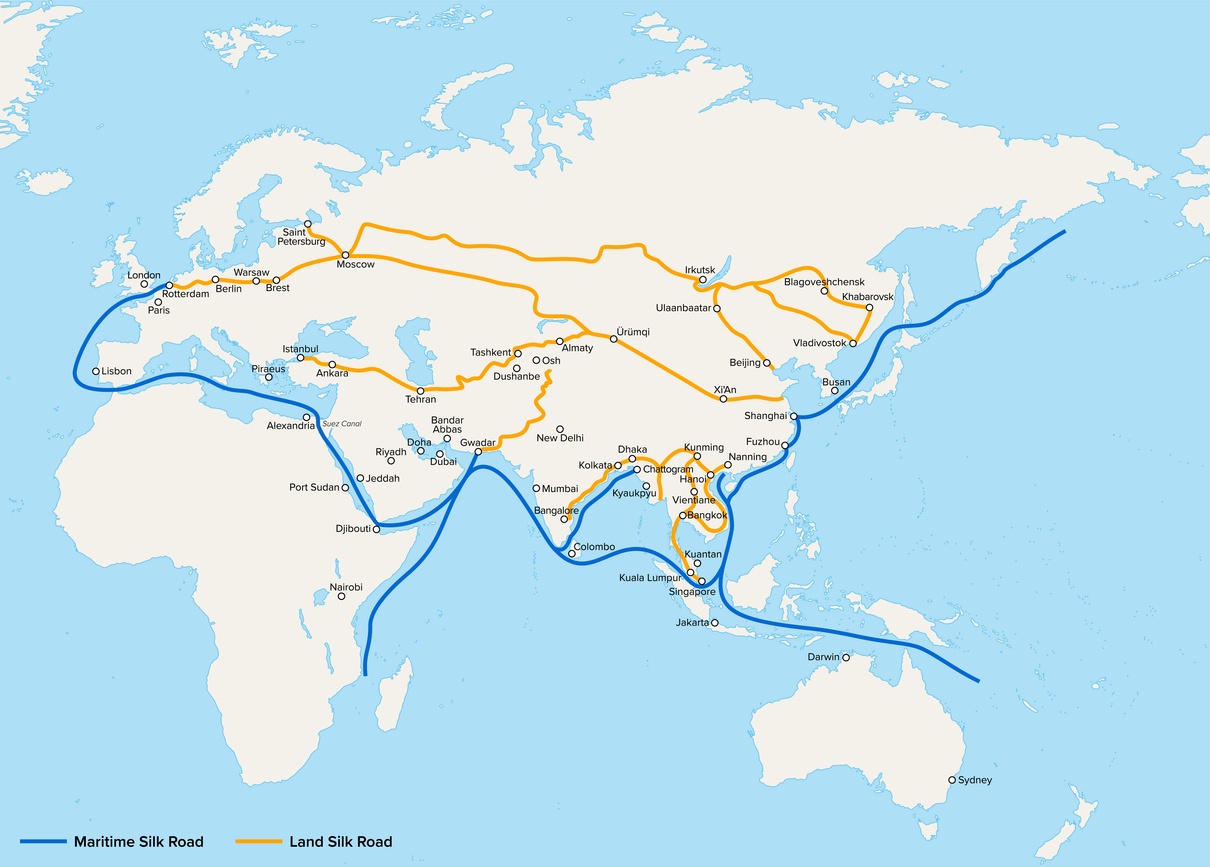 เส้นทางสายใต้ (ผ่านเมียนมา-อินเดีย-ตะวันออกกลาง): เป็นเส้นทางที่มีความท้าทายสูงกว่า ต้องผ่านเมียนมา, อินเดีย, ปากีสถาน, อิหร่าน และตุรกี เพื่อเข้าสู่ยุโรป เส้นทางนี้อาจพบกับความไม่แน่นอนทางการเมือง เช่น ความตึงเครียดบริเวณชายแดนปากีสถาน-อินเดีย และความซับซ้อนของวีซ่าในบางประเทศ เช่น อิหร่าน