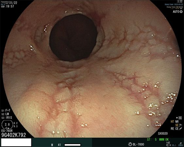 จนกระทั่งญาติขอร้องให้ไปพบแพทย์เฉพาะทางด้านหู คอ จมูก เมื่อตรวจด้วยกล้องส่องภายใน แพทย์ถึงกับตกใจ เพราะหลอดอาหารของเขาเปลี่ยนเป็นสีขาวขุ่น มีลักษณะขรุขระ เคลือบด้วยเมือกสีขาวและเต็มไปด้วยแผลลึก แพทย์ยังพูดติดตลกว่า “ดูเหมือนหนังหมูต้มไม่สุก” ผลตรวจยืนยันว่าเขามีภาวะ “หลอดอาหารไหม้และอักเสบเรื้อรัง” และเริ่มมีสัญญาณก่อนเกิดมะเร็งหลอดอาหาร แต่ชายผู้นี้กลับโต้แย้งว่า “ผมก็แค่เจ็บคอ หมอพูดเกินจริง” เขายืนยันว่าตนเองดูแลสุขภาพดี ดื่มแต่น้ำอุ่น กินอาหารร้อนจัดเป็นประจำเพราะคิดว่าดีต่อร่างกาย