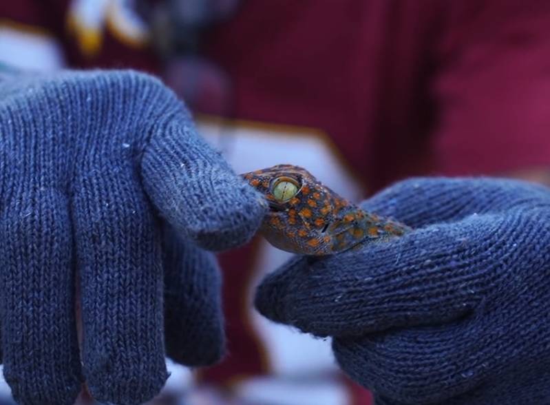 ยูทูบช่อง Nick Wildlife ทำคอนเทนต์พิสูจน์วิธีที่ดีที่สุดเมื่อถูกตุ๊กแกงับไม่ยอมปล่อย แล้ววิธีไหนล่ะ คือวิธีที่ดีที่สุด ที่เมื่อมันปล่อยแล้วจะไม่ม้วนตัวกลับมางับเราได้อีก
