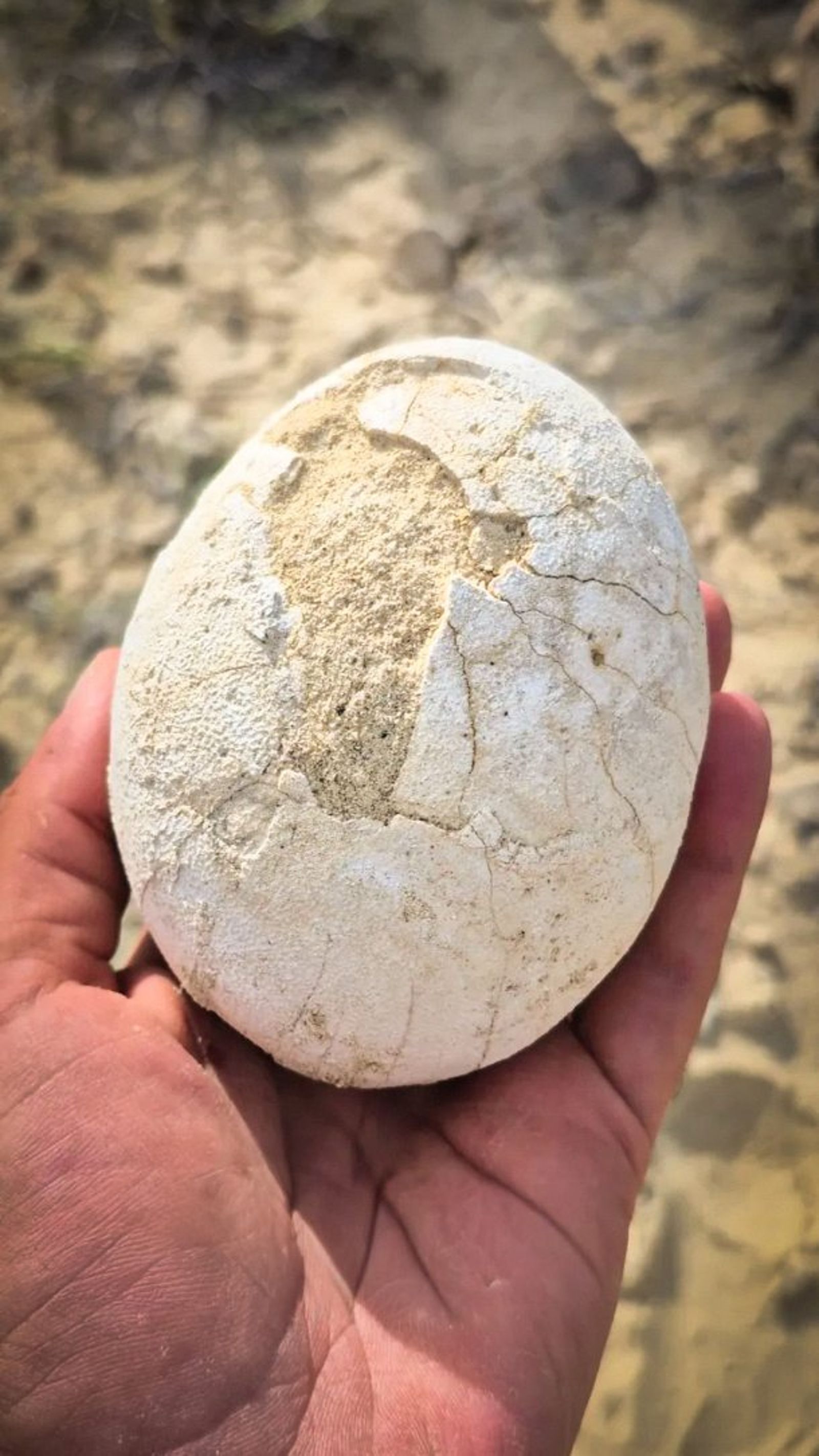 ฟอสซิลไข่ใบนี้มีสภาพสมบูรณ์อย่างน่าทึ่งจนดูคล้ายไข่นกกระจอกเทศ ทีมวิจัยยังพบว่ามันไม่ได้อยู่เพียงใบเดียว แต่เป็น “ทั้งรัง” ซึ่งอาจนับเป็นครั้งแรกที่มีการพบไข่ของไดโนเสาร์กินเนื้อในทวีปอเมริกาใต้