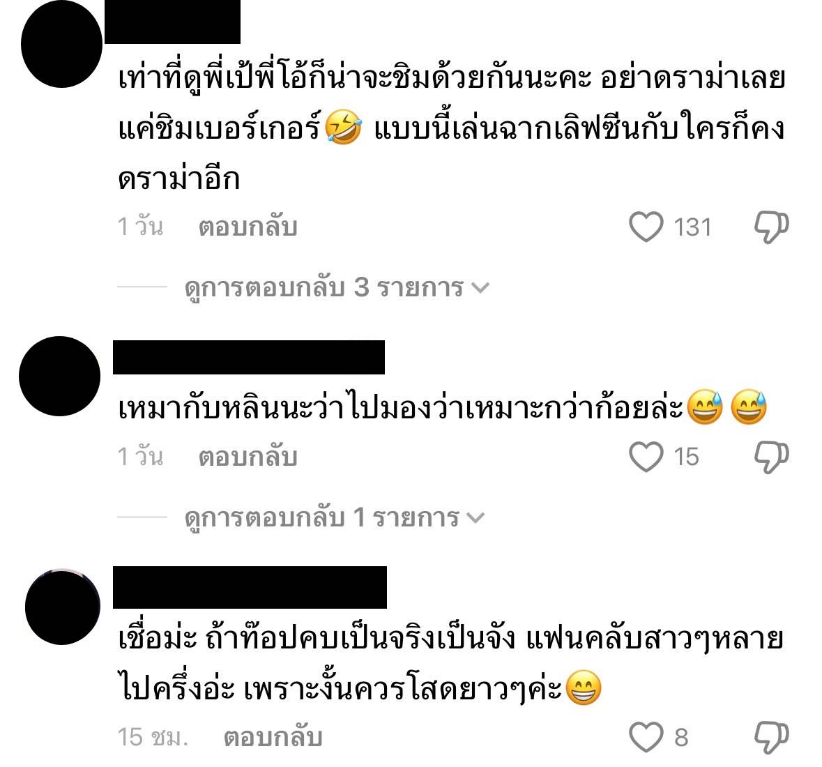 มีคอมเม้นต์แตกเป็นสองเสียงบางคอมเมนต์มองว่า “ไม่เหมาะสม” ขณะที่อีกฝั่งกลับมองว่า “เป็นแค่เพื่อนร่วมงานที่สนิทกัน” เช่น