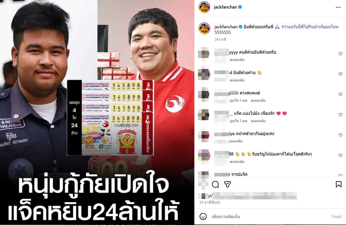 แจ็ค แฟนฉัน ยินดีกับพี่กู้ภัย หลังตนเองหยิบลอตเตอรี่มอบโชคใหญ่ 24 ล้านบาท แฟนๆ ต่างกดไลก์กันรัวๆ
