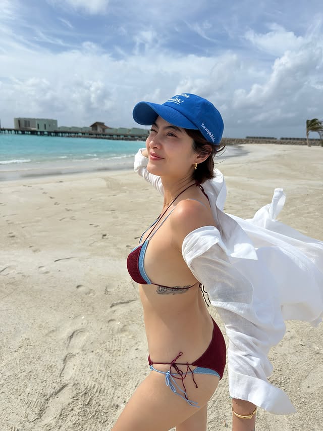 คุณแม่มาร์กี้มาในชุดบิกินี่ตัวจิ๋วสีสันสดใส ที่เผยให้เห็นหุ่นสุดเป๊ะปังทุกสัดส่วน แม้จะมีลูกแฝดแล้ว แต่รูปร่างของเธอก็ยังฟิตเฟิร์มจนน่าอิจฉา ท่ามกลางหาดทรายขาวละเอียดตัดกับน้ำทะเลสีครามและท้องฟ้าสดใส ภาพเซ็ตนี้เรียกได้ว่า "ทะเลเดือด" จนต้องซับเหงื่อกันเลยทีเดียว