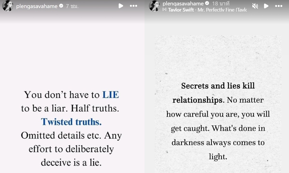 "เพลง ชนม์ทิดา" โพสต์สตอรี่การโกหกกับความสัมพันธ์ อ่านแล้วรู้เรื่อง!