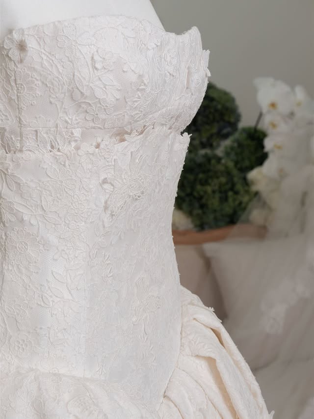 ข้อความดังกล่าวสะท้อนให้เห็นถึงความประทับใจของใหม่ที่ได้สวมชุดเจ้าสาวในฝันจากแบรนด์ระดับโลก ซึ่งตัดเย็บอย่างประณีตและเข้ากับบุคลิกของเธออย่างลงตัว ทำให้เจ้าสาวป้ายแดงคนนี้ดูราวกับเจ้าหญิงในเทพนิยาย สมกับการเป็นหนึ่งในวันสำคัญที่สุดในชีวิตจริง ๆ