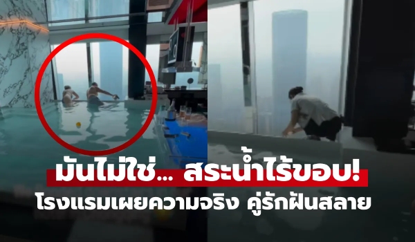 คู่รักพักโรงแรมหรู "แช่สระไร้ขอบ" กำลังโรแมนติก จู่ๆ ได้รับแจ้ง “ฝันสลาย” ทำชั้นล่างท่วม!