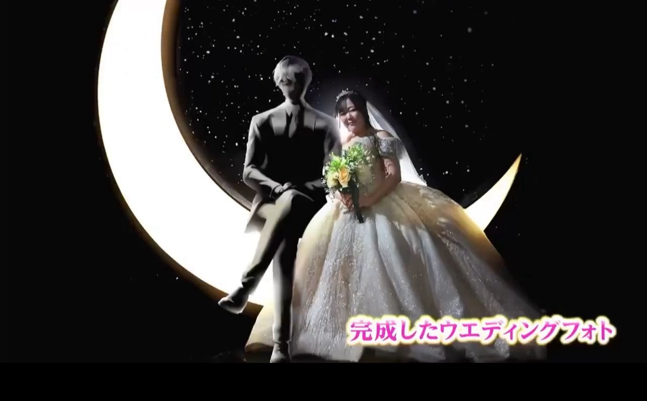 พิธีแต่งงานจัดขึ้นโดยมีคาโนะสวมชุดเจ้าสาว ยืนเคียงข้างแท็บเล็ตที่แสดงภาพของเจ้าบ่าว ผ่านเทคโนโลยี AR ที่ช่วยให้เธอ “มองเห็น” คู่ชีวิตเสมือนจริง ขณะที่คุณพ่อของเธอเป็นผู้ช่วยสวมแหวนแทนเจ้าบ่าว