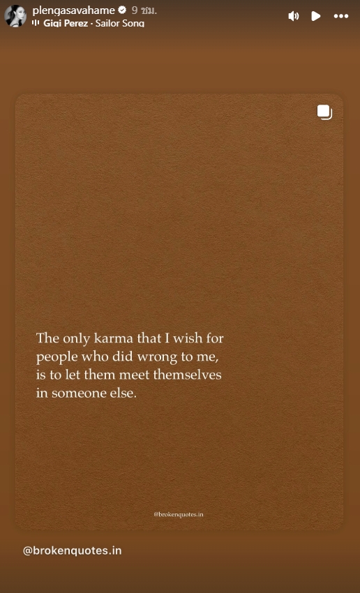 ล่าสุด โลกโซเชียลต่างจับตามองอีกครั้ง เมื่อสาวเพลงได้โพสต์ข้อความปริศนาที่ชวนให้หลายคนตีความไปต่างๆ นานา โดยข้อความที่เพลงนำมาแชร์จากบัญชี @brokenquotes.in ระบุว่า