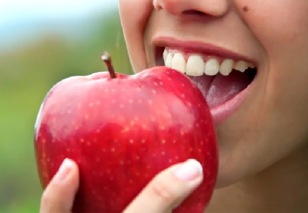 แอปเปิลมีวิตามินมาก น้ำตาลน้อย และช่วยขัดฟันตามธรรมชาติ จากการเคี้ยว นอกจากนี้ นักโภชนาการยังแนะนำให้กินตอนเช้า เพราะช่วยกระตุ้นระบบย่อยอาหารและการขับถ่าย ไฟเบอร์ชนิดเพคตินในแอปเปิลช่วยดึงสารพิษออกจากร่างกาย จึงดีทั้งต่อฟันและระบบทางเดินอาหาร