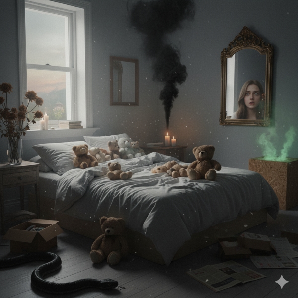 กระจกเป็นของจำเป็นในห้องนอน แต่ตำแหน่งวางสำคัญมาก การตั้งกระจกให้หันตรงเข้าหาเตียงหรืออยู่ใกล้หัวเตียงเกินไป มักถูกร้องเรียนว่า “นอนแล้วหลอน” โดยเฉพาะเวลาตื่นกลางดึกหรือมีแสงรำไรสะท้อนเงาในกระจก ทำให้รู้สึกไม่ปลอดภัย หวาดระแวง และมีผลเสียต่อคุณภาพการนอนในระยะยาว