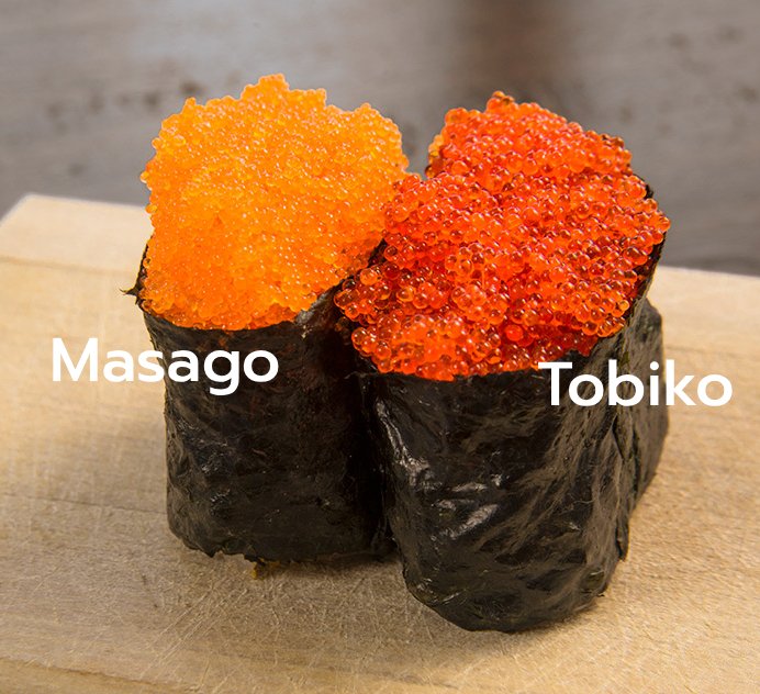 - ร้านซูชิทั่วไปใช้ Masago หรือไข่ปลาคาเปลินเป็นหลัก