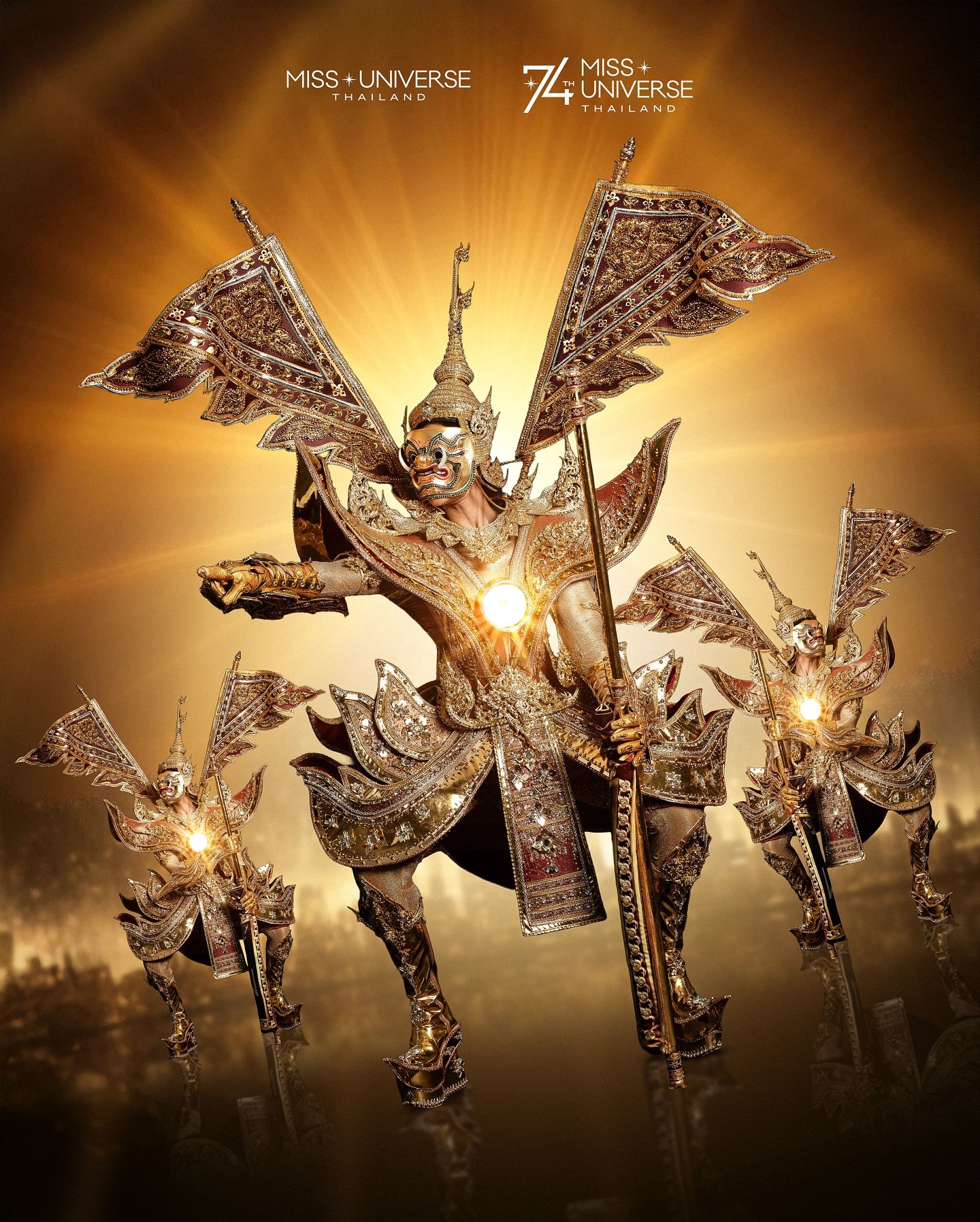 ปีนี้ ชุดประจำชาติไทยมาในชื่อ “สุวรรณรากษา พญายักษ์พิทักษ์สุวรรณภูมิ” (Suwanna Raksa) ผลงานจากห้องเสื้อชื่อดัง อาร์ทอัครัชเนรมิตศิลป์ ที่รังสรรค์อย่างประณีตทุกขั้นตอน โดยหยิบแรงบันดาลใจจากตำนานพญายักษ์—สัญลักษณ์แห่งความเข้มแข็ง เกียรติยศ และการปกป้องผืนแผ่นดินไทย