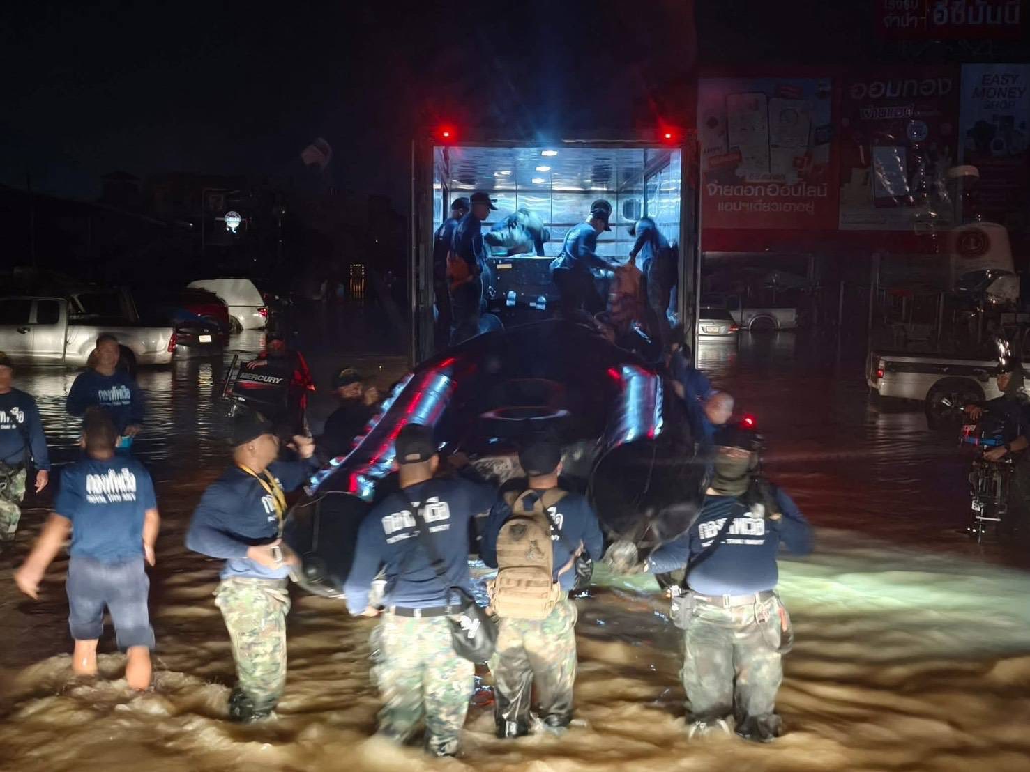 ชุดช่วยเหลือด้วยเรือยาง หน่วยบัญชาการสงครามพิเศษทางเรือ กองพันลาดตระเวน กองพลนาวิกโยธิน และชุดประดาน้ำ เข้าถึงพื้นที่น้ำท่วมแล้ว พร้อมเริ่มภารกิจช่วยเหลือประชาชนอย่างเต็มกำลัง