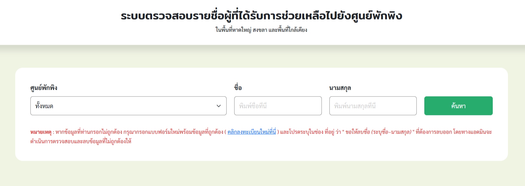 ตรวจสอบรายชื่อผู้อพยพ "น้ำท่วมหาดใหญ่" เพียงกรอกชื่อ–นามสกุล ก็เช็กได้เลย!