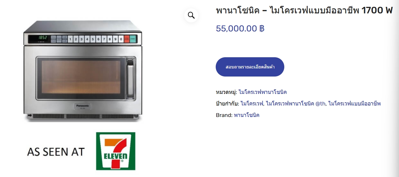 ซึ่งไมโครเวฟ 7-Eleven ที่หลายคนเห็นตามสาขานั้น ไม่ใช่รุ่นที่มีกันตามบ้านทั่วไป แต่เป็นเกรดอุตสาหกรรม ยี่ห้อ Panasonic ที่ให้กำลังความร้อนสูงสุดถึง 1,700 วัตต์ ทำให้อาหารอุ่นเร็วและร้อนทั่วถึงกว่าเครื่องใช้ในครัวเรือนหลายเท่า