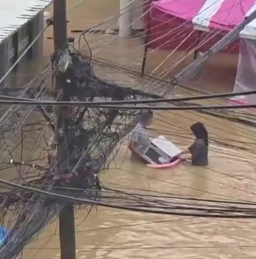 เมื่อมีภาพของชายหญิงคู่หนึ่ง กำลังช่วยกันขนไมโครเวฟด้วยกะละมังให้ลอยไปกับน้ำ โดยไมโครเวฟเครื่องดังกล่าวเป็นรุ่นที่ใช้ในทางอุตสาหกรรม ซึ่งเมื่อตรวจสอบแล้วพบว่าเป็นไมโครเวฟของร้านสะดวกซื้อดังอย่าง 7-Eleven