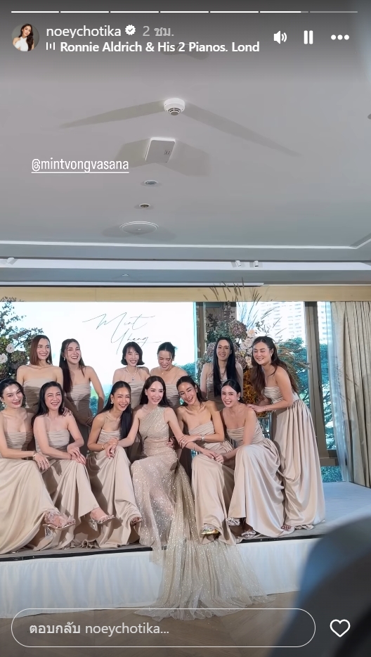 และหนึ่งในนั้นก็อดจะโฟกัสไปที่ "แก๊งเพื่อนเจ้าสาว" ไม่ได้จริงๆ เพราะว่ากันครบทีม ซึ่งเพื่อน มิ้นต์ ณัฐวรา เจ้าสาวคนสวยนั้นก็มีทั้งเพื่อนนอกวงการและในวงการบันเทิง อาทิเช่น หยาดทิพย์ ราชปาล,เนย โชติกา,เบนซ์ ปุณยาพร