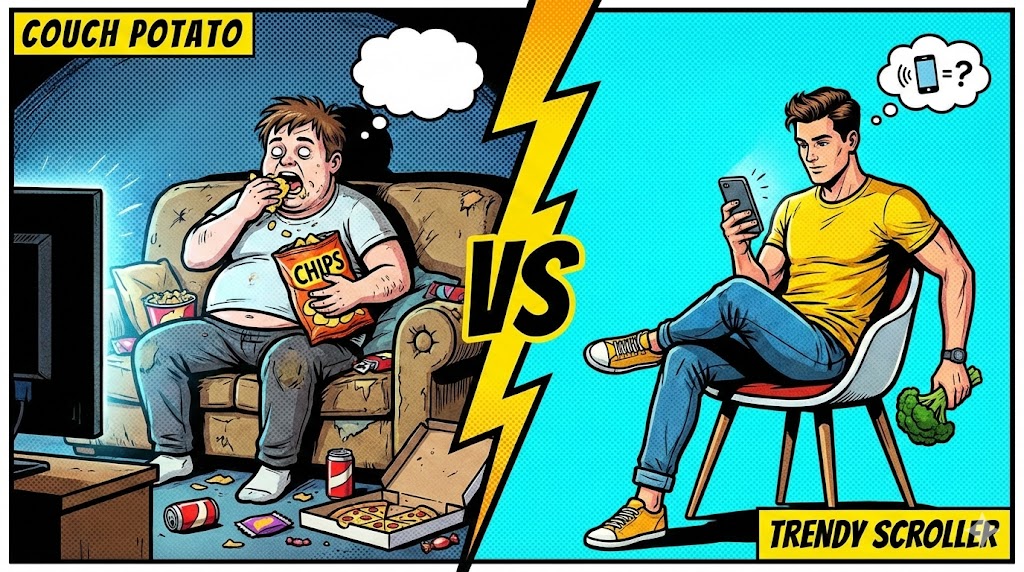 แต่ในยุคดิจิทัลที่ทุกคนต้องเสพคอนเทนต์ตลอดเวลา หากต้องเลือกระหว่าง ทีวี กับ มือถือ... การไถมือถือไปกินไป อาจเป็นทางเลือกที่ "ทำให้อ้วนน้อยกว่า" การนั่งแช่หน้าทีวี (แต่อย่าเผลอวางมือถือพิงแก้วน้ำแล้วใช้สองมือโซ้ยนะครับ อันนั้นอ้วนเท่าเดิมแน่นอน!)